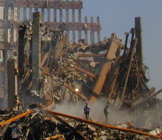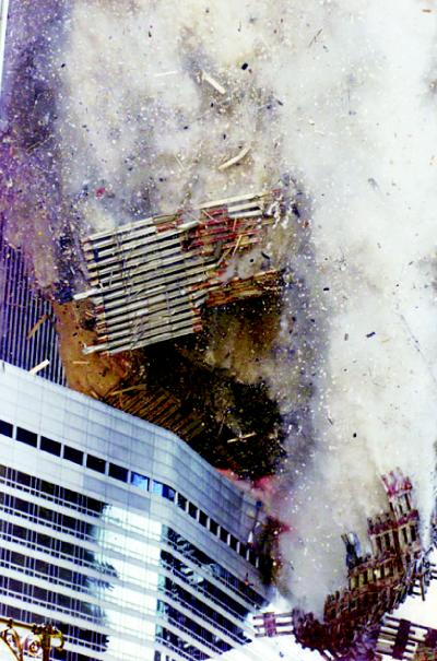 A tornyok felső kilengése a meggyengült alap miatt 93 után folyamatosan növekedett. Ha nincs támadás, vagy nem bontják le őket, akkor ma 2010 körül kb. az Északi torony nem összeomlik , hanem elhasal (eldől) mint a gyalogbéka. Az óriási rezgés miatt néhány órával később követte volna a másik is. Így óriási összeget kaszáltak! Alapot teremtettek az iraki és az afganisztáni invázióhoz. Az, hogy később a magas hőt vegyi anyagokra fogták, egyszerűen hazugság. Sokan nem tudják, hogy a BETON 880 fokon kiválóan ég (egyszerűbben; izzik és szinte olthatatlan a magas hőtelítettség miatt. Oka: anyagának egyrésze víz, a benne lévő kő és vas katalizátorként működik. Bin Ladennek a robbantáshoz nuku köze!”