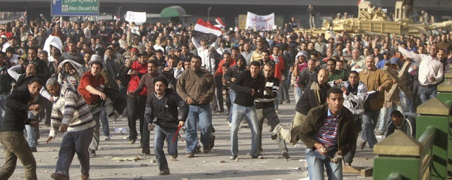 Kép: Mubarak hívei tevékkel és lovakkal támadtak, de leverték őket, sok állat elpusztult