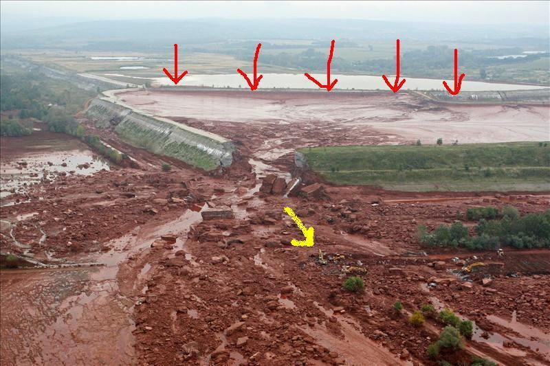 A gáton látható munkagépek is valószínűleg a megerősítésen dolgoznak. De még így is kérdéses, hogy sikerül-e megakadályozni az újabb gátszakadást, mert a beszámolók szerint a gát szivárog és több helyütt csuszamlások is láthatók.